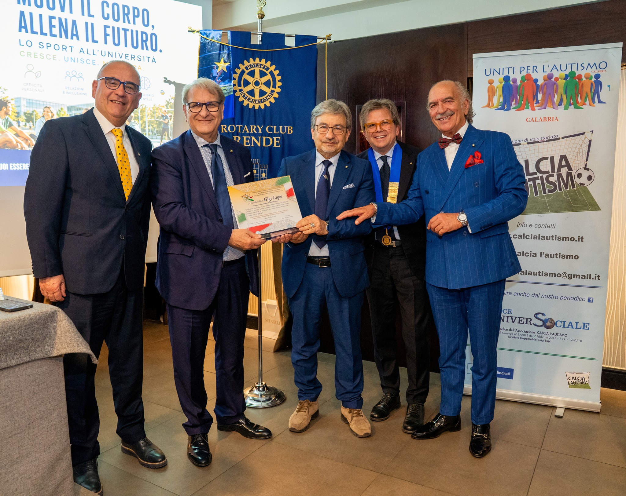 Nell’occasione l’ANCRI (Associazione Nazionale Insigniti Ordine al Merito della Repubblica Italiana) sezione di Cosenza ha consegnato una targa a Luigi Lupo, presidente di Calcia l’Autismo.