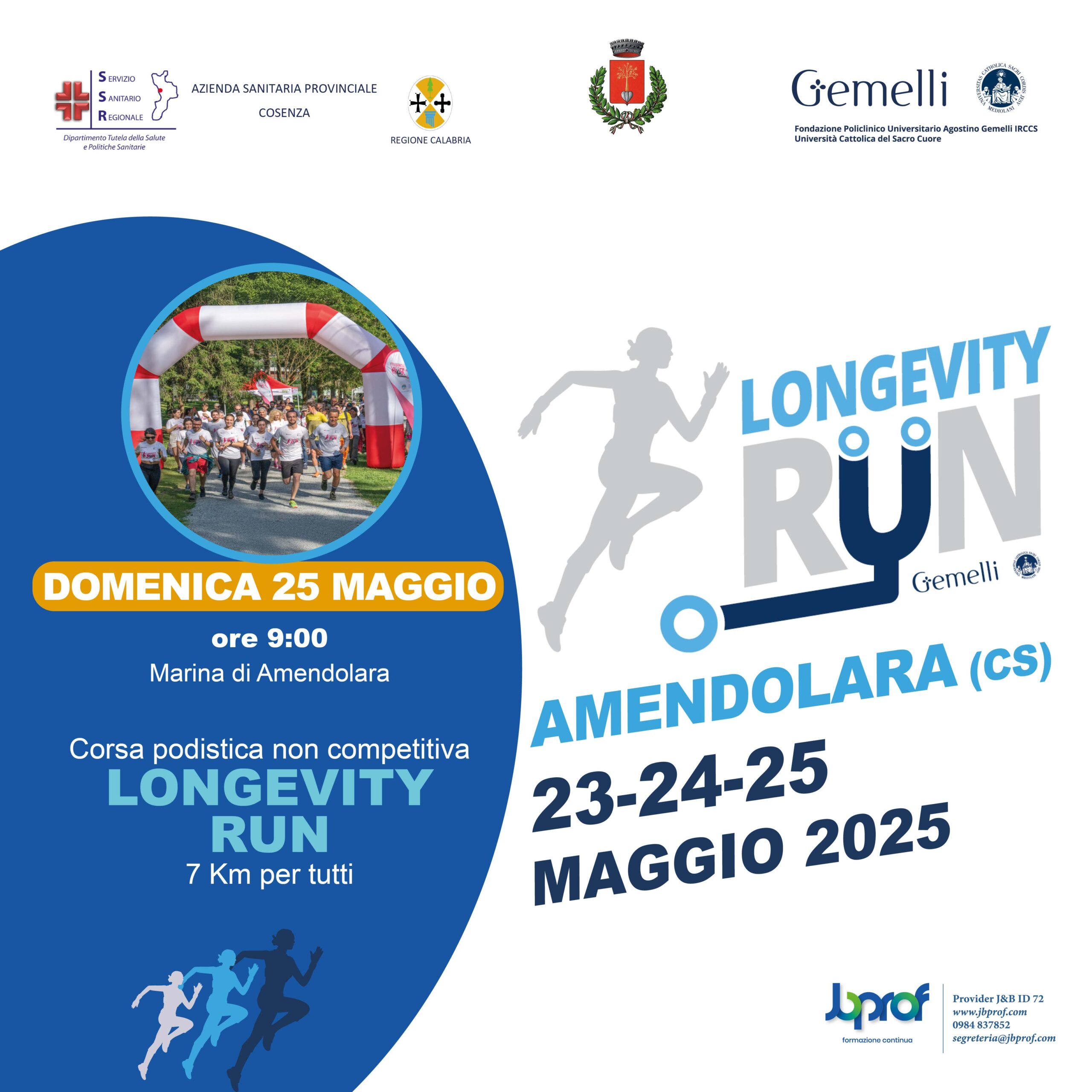 Approda in Calabria, per la prima volta, Longevity Run, il progetto della Fondazione Policlinico Universitario A. Gemelli IRCCS che ha l’obiettivo di prevenire le patologie legate all’invecchiamento, promuovere l’adozione di uno stile di vita adeguato e incentivare l’esercizio fisico per migliorare le condizioni dello stato di salute della popolazione. Tre le giornate, dal 23 al 25 maggio, dedicate alla prevenzione e alla salute: incontri scientifici, check up gratuiti, screening, consulenze con 14 medici specialisti e domenica l’evento clou: la corsa amatoriale su un percorso di sette chilometri interamente pianeggiante e adatto a tutti. Ad ospitare l’iniziativa il Comune di Amendolara. L’iniziativa ha il patrocinio dell’Asp.