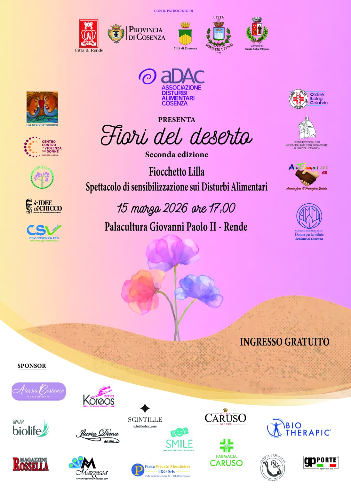 L’ADAC (Associazione Disturbi Alimentari) di Cosenza ha organizzato la seconda edizione di “Fiori del Deserto”, spettacolo di sensibilizzazione sui disturbi alimentari in occasione della Giornata nazionale del fiocchetto lilla. L’appuntamento […]