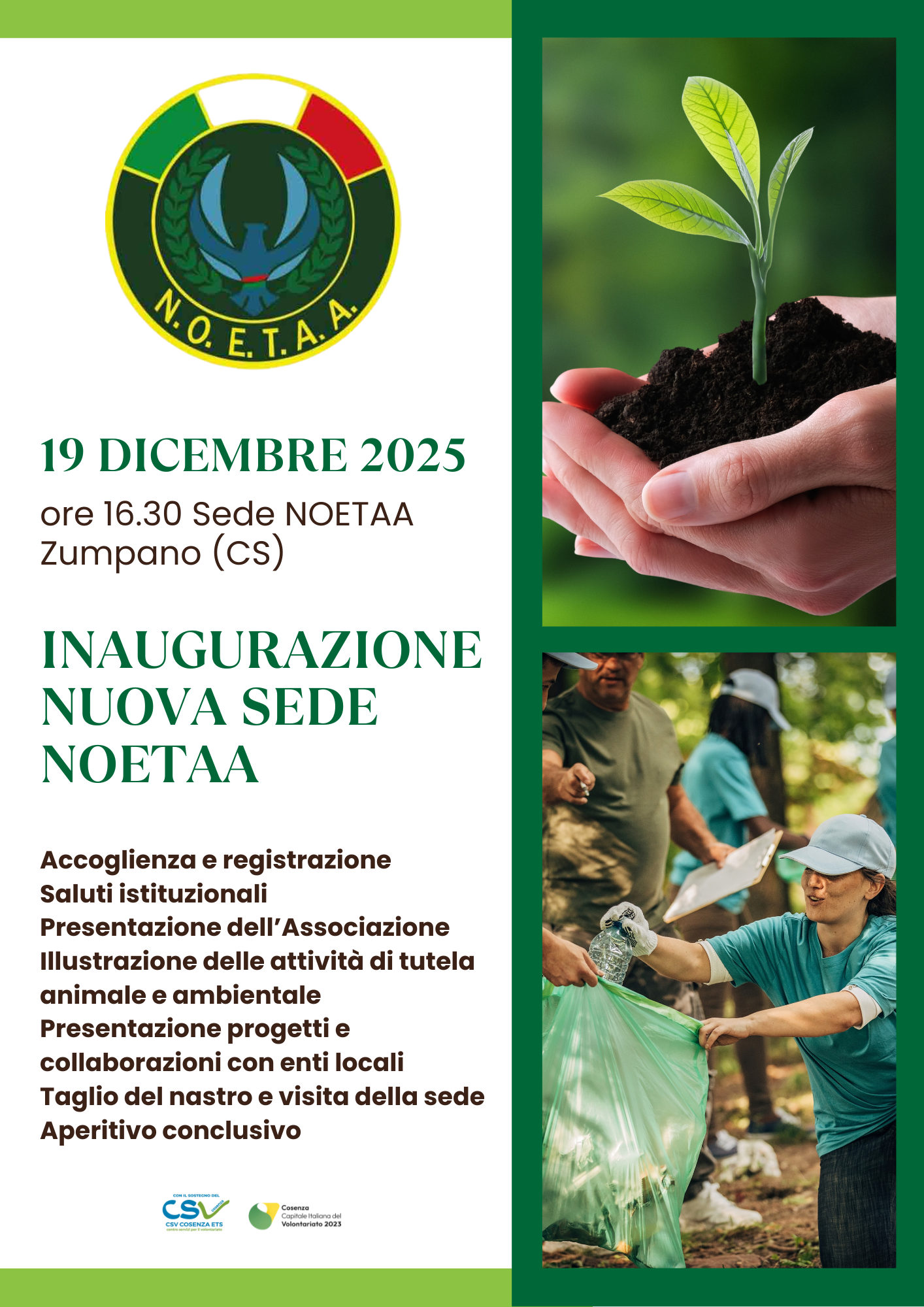 Il 19 dicembre, alle ore 16.30, sarà inaugurata la sede dell’associazione NOETAA a Zumpano via Beato Francesco Marino, zona industriale. I volontari dell’associazione accoglieranno tutti i cittadini che vogliono partecipare […]