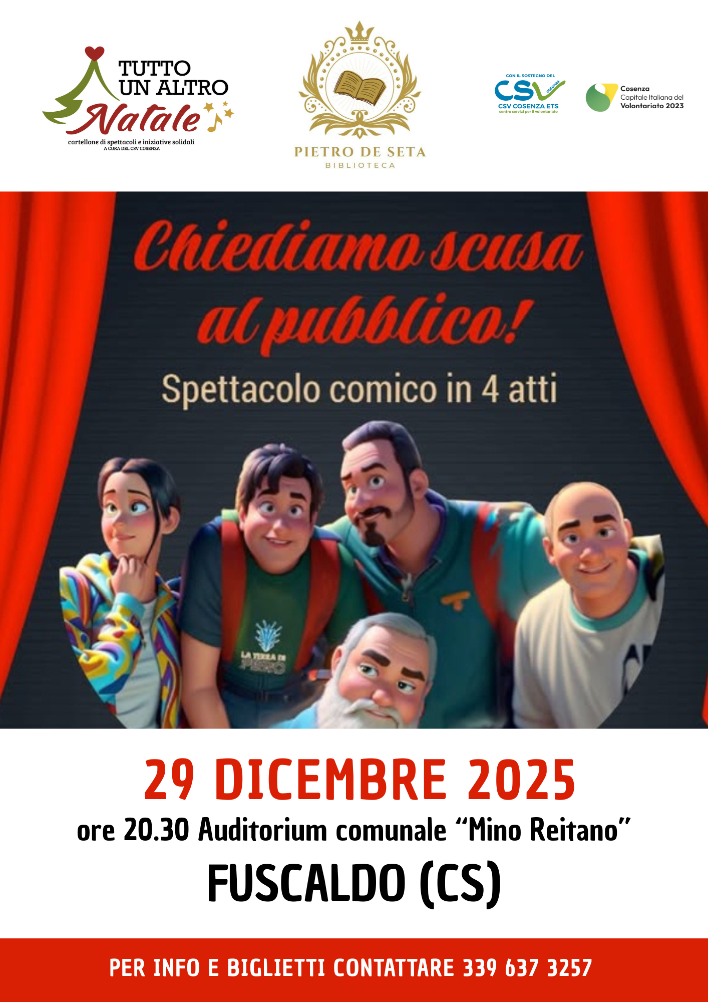 Il 29 dicembre, alle 20.30, all’auditorium Mino Reitano di Fuscaldo, andrà in scena “Chiediamo scusa al pubblico”, spettacolo comico in 4 atti, organizzato dalla Biblioteca Pietro De Seta. Per informazioni […]