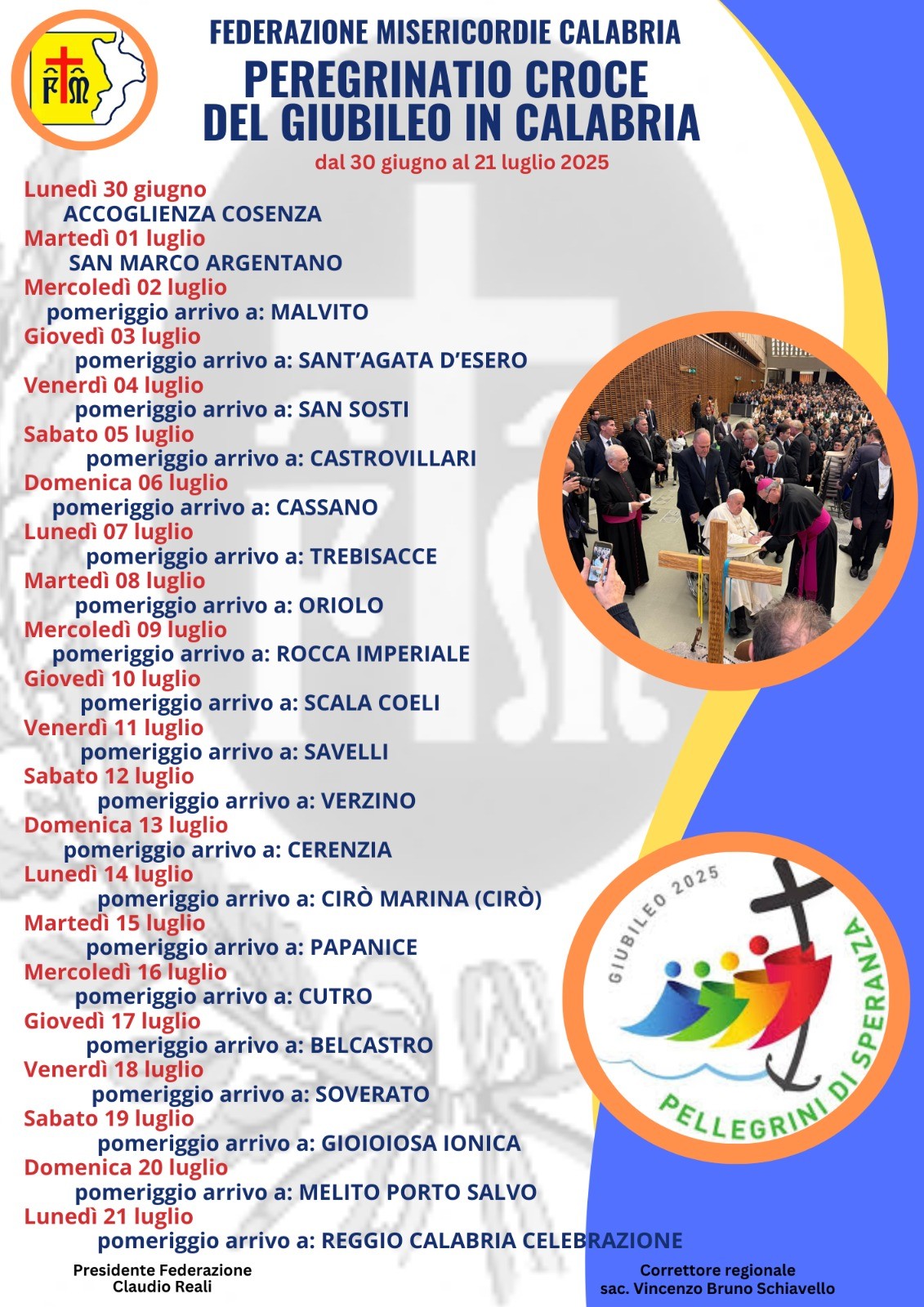 La Federazione delle Misericordie della Calabria ha organizzato la Peregrinatio Croce del Giubileo nella nostra regione dal 30 giugno al 21 luglio 2025. L’accoglienza nella provincia di Cosenza è prevista […]