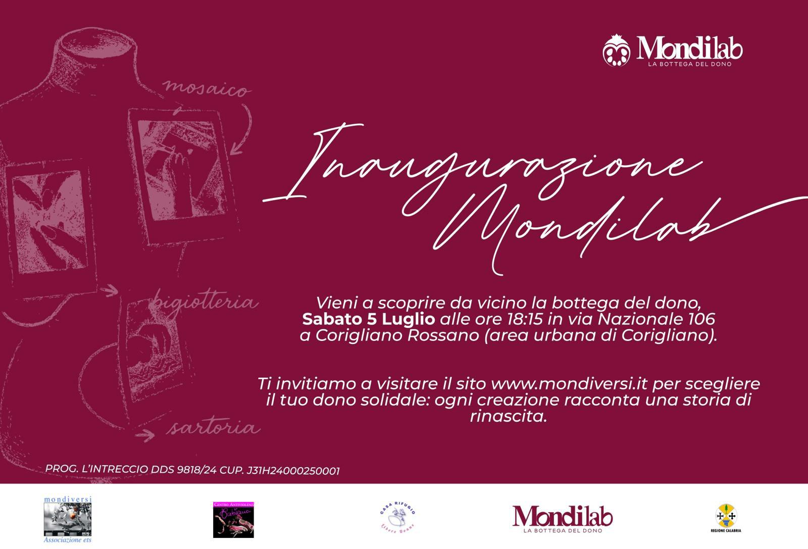 Sabato 5 luglio, alle 18.15, l’associazione Mondiversi ETS, inaugurerà “La bottega del dono – Mondilab”, in via Nazionale n. 106, a Corigliano-Rossano, area urbana di Corigliano, sede della Bottega. La […]