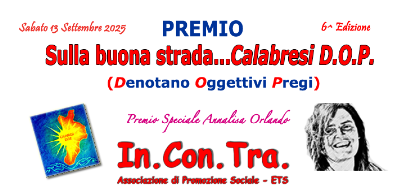 L’Associazione di Promozione Sociale “In.Con.Tra.” con il patrocinio del Comune di Castrolibero organizza la sesta edizione del Premio “Sulla buona strada…Calabresi D.O.P.”. Il Premio si articola in due sezioni di […]