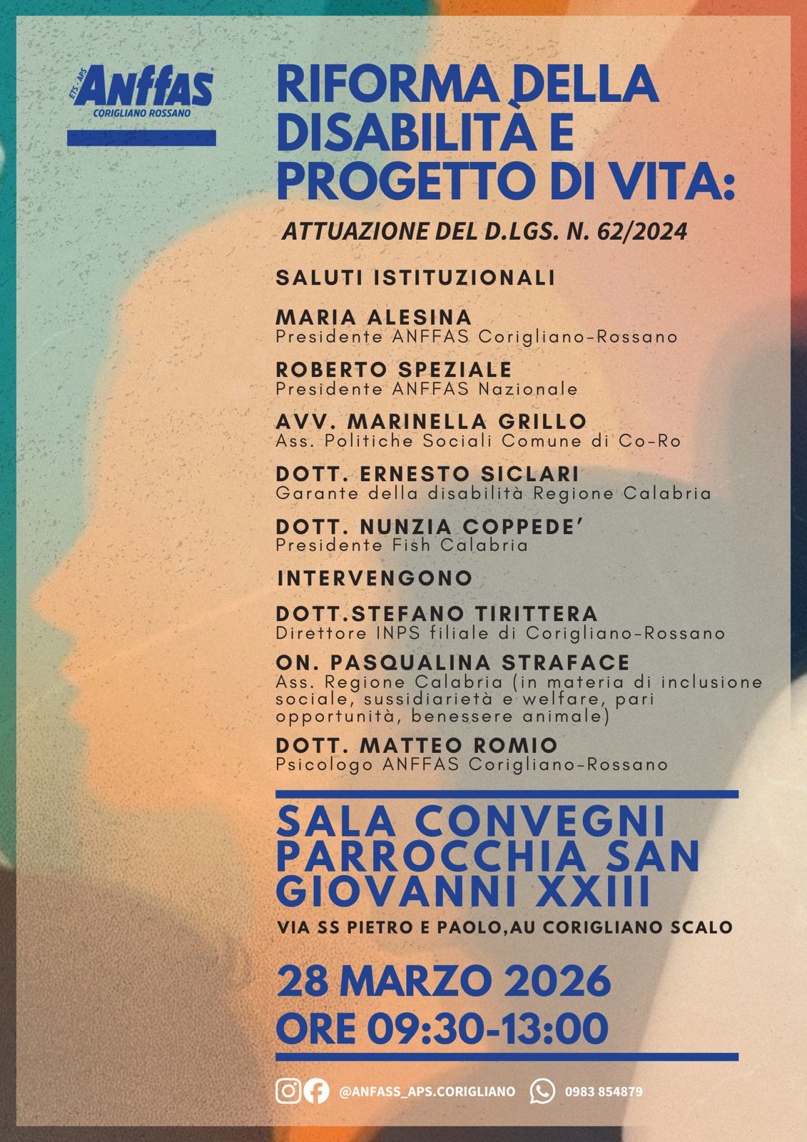 Sabato 28 marzo, nella sala convegni della Parrocchia San Giovanni XXIII, nell’area urbana Corigliano Scalo, a Corigliano Rossano, si terrà l’incontro “Riforma della disabilità e progetto di vita: attuazione del […]