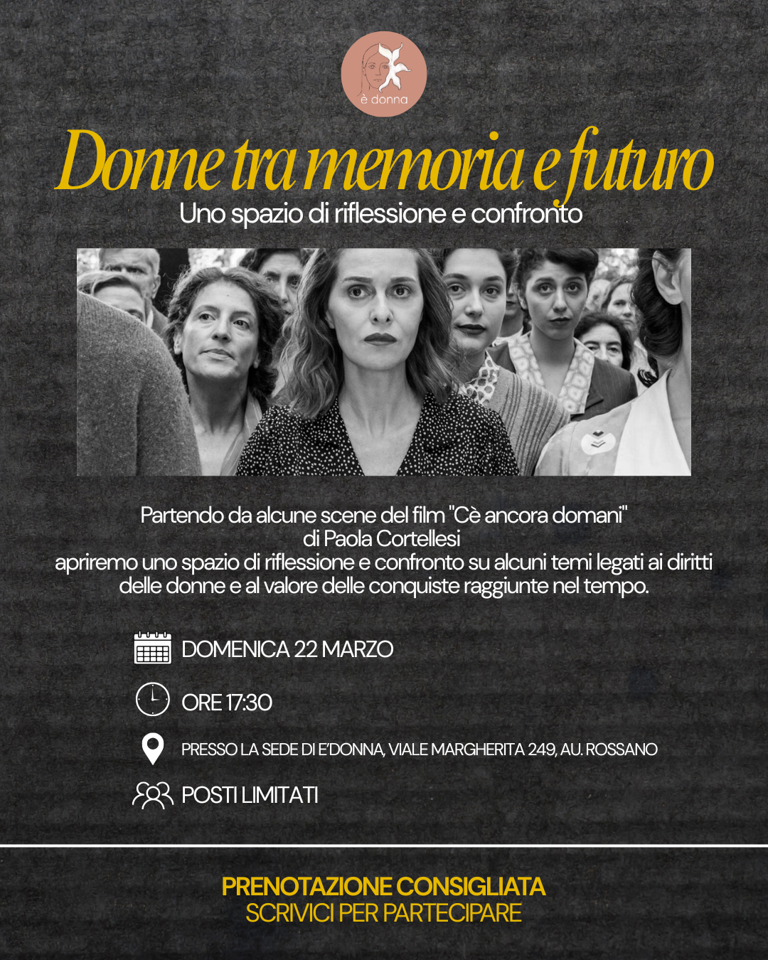 Domenica 22 marzo, nella sede dell’associazione “È donna” di Corigliano Rossano, area urbana Rossano, alle 17.30, si terrà l’incontro “Donne tra memoria e futuro, uno spazio di riflessione e confronto”. […]